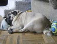 Our little Choo Choo Charlie is a heartbreaker. He is currently undergoing some tests to diagnosis his illness. Could be nuerologic, could be a portosystemic shunt, could be any number of other issues. This little guy has quite a few vet visits coming up. More details will be posted once we know more about Choo Choo's health & what we're dealing with. Choo Choo will have many vet bills piling up, but we don't want to give up on him, he's only a year old. Just getting a diagnosis could be pricey. We are currently accepting donations to help out with Choo Choo's medical expenses. UPDATE: Choo Choo's bile acid test has come back negative, therefore a portosystemic shunt has now been ruled out. We have a nuerology consult scheduled for the little guy in August. We will update his page as we find out more about his medical condition. In the meantime Choo Choo is adapting well and we are leaning to adapt to him as well. He loves to run in the play yard and gets along with the other pugs, loves to curl up next to them when napping. UPDATE: We have a diagnosis for our little Choo Choo Charlie, hydroencephalitis, which is basically brain damage. Some likely causes could have been lack of oxygen to the brain during birth or a virus as a puppy which spread to the brain, but we'll never know for sure. His behavior does not seem to be getting any worse which is good. He has been adapting well & still very much a happy little pup at most times. UPDATE: Choo Choo was recently nuetered and while under anethesia the vet discovered a malformation with his jaw, most likely one he was born with. Corrective surgery was done & he currently has his jaw partially wired to fuse toghether. The wires will be removed in 6 weeks. He is recovering very nicely. At this time Choo Choo Charlie remains on medical hold. UPDATE: Choo Choo's wire around has jaw has been removed and we're happy to report success, his jaw is now fully fused together. We're still working on behavior issues with our little Choo, but he is making some improvements. We don't believe he will ever be able to be trusted around children. He can change quickly from being calm to aggressive without warning. Potential adoptors must be very patient and committed to his care and well-being as he grows up. He will remain on medical hold for now as we continue to work with him. UPDATE: Choo Choo Charlie is doing very well, but due to the hydrocephalitis he will remain a permanent resident of our rescue. After two years of working with him, he has made great improvement, however we've found he does not do well with change and has adapted very well to his current environment. The pugs here accept him and he does well with them. He really enjoys running in the play yard & playing with his toys. He also has a favorite napping spot, pug friends and will cimb into a dog bed with another pug for some cuddle time. Being in a familiar environment seems to keep him much calmer and happy. |