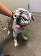 Mister Rogers is approximately a 13`0o year old, male pug. Completely blind & deaf. Previous ruptured left eye. Possible nuerologic issue affecting his walking, may get worse as he ages. Unable to control bladder or bowels. Can be very sweet. Will obviously need some extra care. He is a little underweight for his size, so at this time we are working on his weight gain & muscles. Information to come as we learn more about this determined little fellow. He has a few vet visits coming up, info to follow. Update: He's made great improvement, is off medical hold & ready for adoption. Not recommended for a home with small children. |