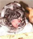 Pong is a very friendly pug who arrived with her sister Ping. She recently was treated for a urine infection & was found to have very large bladder stones, which were removed.. Pong is a very happy one-eyed pug. We're told her missing eye is due to an injury when she was a puppy & was medically removed at that time. Having one-eye has not slowed her down a bit. We would really like to keep Pong & her sister Ping together. They'd love to have a home to call their own. UPDATE: Pong has recovered well from her surgery & was spayed at that time also. UPDATE: Pong is all ready to be adopted however her sister Ping is on temporary medical hold till spayed Click here to see Ping's details. UPDATE: Pong's sister Ping will be spayed next week. Once her stitches are removed & she is fully recovered Ping & Pong will be available for adoption possibly by the end of March or early April. UPDATE: Pong's sister Ping is all better. Pong & Ping are ready to be adopted in their forever home. |