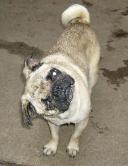 Meet Tate, or full name, Little Man Tate, or Mr. Taters as we lovingly refer to him Mr. Taters. This very Special Pug came in with a group of dogs from a puppy mill. He was being used as a stud dog. Needing a little extra TLC he came into our care. He was found living outside under a board with no food or water. Arriving flea infested and with worms, he’s happy to now be flea-free and clean. His scrapes and scratches have all been thoroughly cleaned out and on the mend. He has a skin condition which we are currently treating. He is blind in one eye, in which the globe is dead has shrunk back into the eye socket. This looks to be an old injury. Mr. Taters is very underweight as you can see from his photos above. He does have a good appetite and we currently have him on a high calorie food to help. His strength has already been coming back to him. He makes great improvement everyday. Loud noises do scare him so we would prefer to find a quiet environment for him. How sad that he had to spend the first few years of his life living in such deplorable conditions. Our little man Tate is a special pug who deserves a second chance for a good life. 1-26-08 Mr. Taters has been admitted to Duncan Manor Animal Hospital due to vomitting for almost a week since he had no improvement from a bland diet or medication. They will be running tests. Estimated costs for diagnostic tests and two day hospital stay is $650. 1-29-08 We're happy to report Mr. Taters is doing well and back home with his wonderful foster family. Our vet believes it was a gastrointestinal problem, cause unknown. Our vet bill is approx. $650 for his 2-day hospital stay. We are accepting donations to help pay for Mr. Taters fund. We have also received a generous donation from MaryAnne Wally of three NFL tickets to the Penguins vs. Red Wings game on February 8th at Mellon Arena, currently being auctioned off on ebay to raise funds to pay Mr. Taters' vet bill. Click here to link to this auction. 2-7-09 Bidding has ended for the above auction. The winning bid was $380 to help pay down Mr. Tater's vet bill. A big Thank you everyone who participated and to our winning bidder. We're happy to announce that Mr. Taters has been adopted & has a wonderful new life with a great family that loves him. |